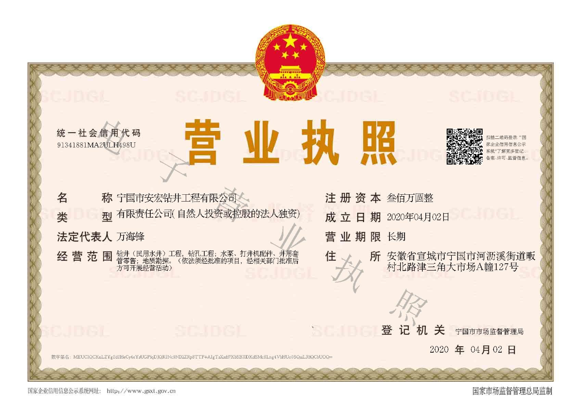 寧國市安宏鉆井工程有限公司,前為安徽興旺鉆井工程隊成立于1998年,公司從事安徽鉆井(宣城打井、寧國打井、蕪湖打井、池州打井、宿州打井、桐城打井、銅陵打井、南陵打井、郎溪打井、廣德打井、績溪打井、馬鞍山打井等),江蘇鉆井(南京打井、高淳打井...